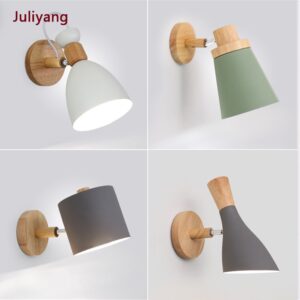 Nordic solid wood bedroom wall light modern minimalist macaron LED wall lamp creative living room indoor lighting AC85-265V